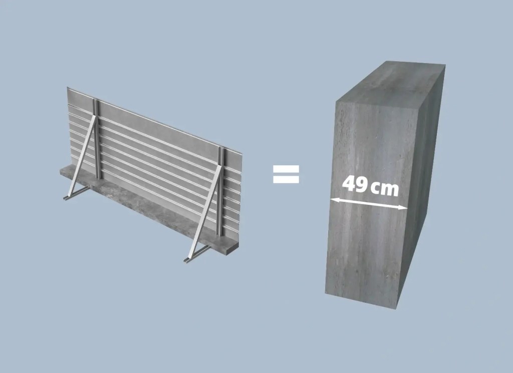 Projekčná kancelária Numerical Simulations potvrdila, že konštrukcia Waterair má vyššiu stabilitu proti preklopeniu ako betónová stena s hrúbkou až do 49 cm.